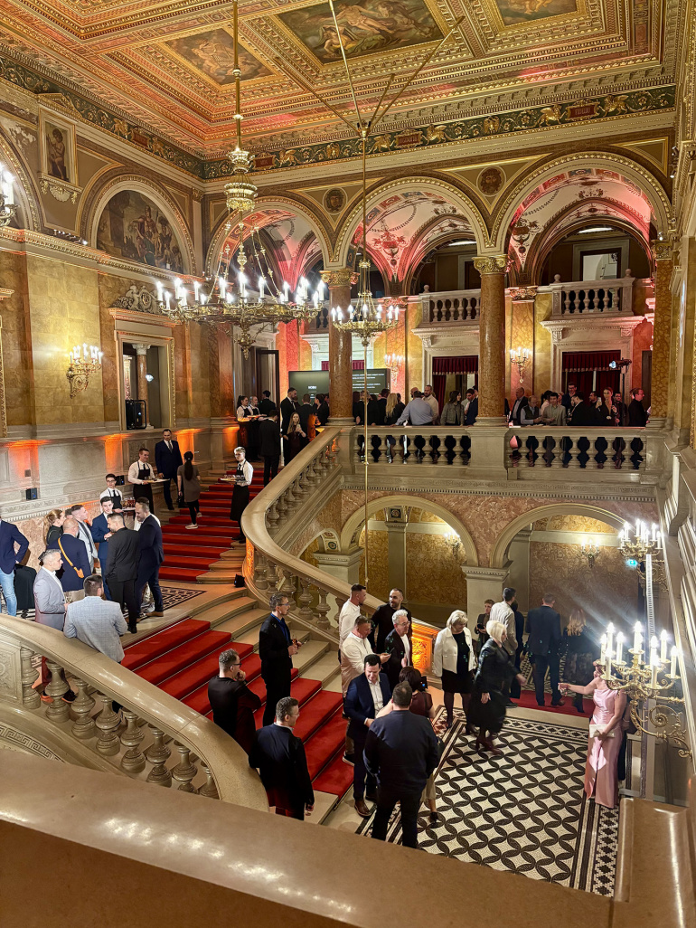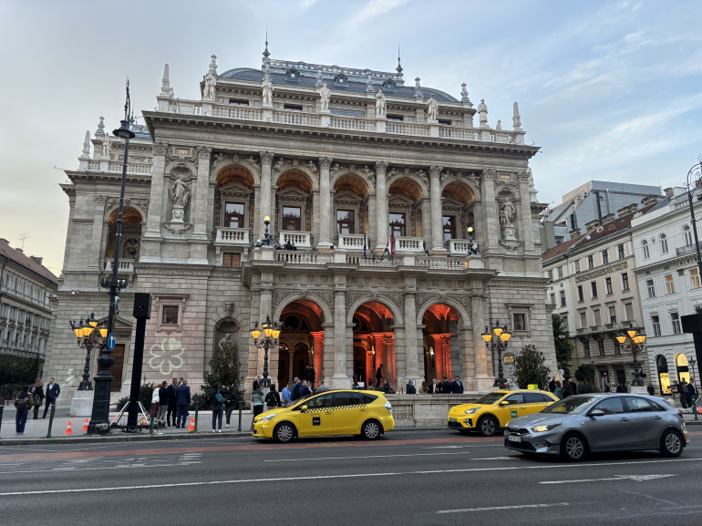 18:15 Szépen lassacskán érkezik mindenki, az Operaház már Michelin színekben pompázik.