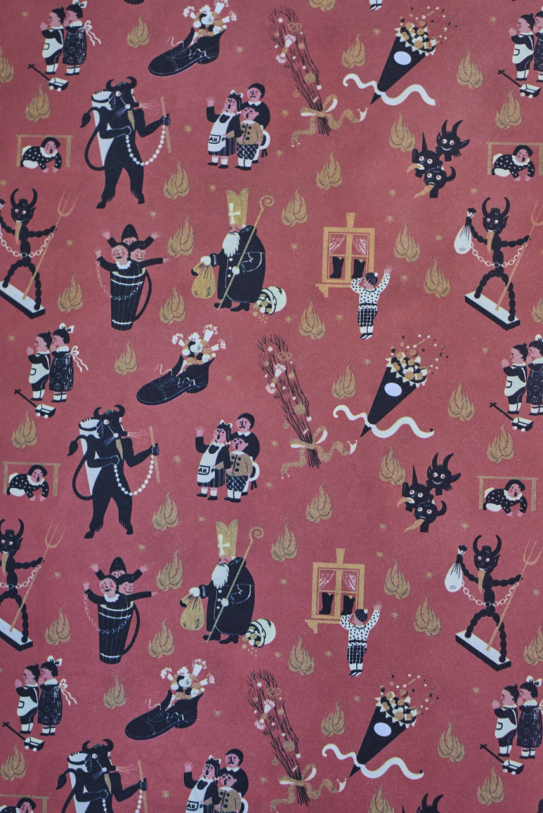 K. Lukáts Kató karácsonyi csomagolópapír grafikája