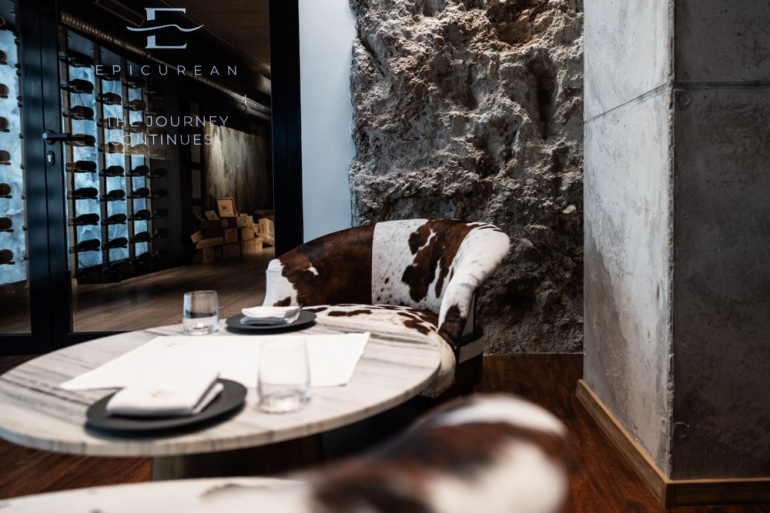 A vendéglátóhely elnevezése árulkodó, az epicurean kifejezést olyasvalakire szokás használni, aki nagyra értékeli a magas szintű gasztronómiai élvezeteket. Ínyenceket vár tehát a hely, amely már megjelenésében sem mindennapi. Az indusztriális helyszín, a kopottas parkoló felől érkezve belül otthonos, csupa fa és márvány burkolatú, elegáns, mégis laza.