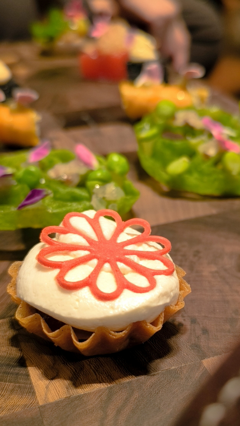 Az ízelítő falatkák színessége és változatossága sokat elárul arról, mire is számíthatunk az est további részén. André Bicalho és csapata olyan látványra is emlékezetes kóstolókkal indít, mint a Wasabis pie tee (bergamottal, zöldborsóval és koriandermaggal készült ropogós), vagy a Tintahalas „kő” néven kínált falat, füstölt angolnamajonézzel. Az est borait pedig Tüű Péter, kétszeres Magyar Sommelier Bajnok állította össze és prezentálja.