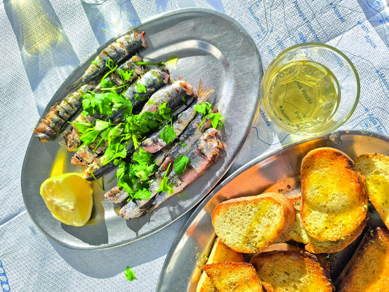 A kiadós, pacalból és a tehénlábból főzött, forrón is kocsonyás, extrém kollagéndózis az, amiért ide járnak a helyiek. Nyugdíjas görög bácsik kanalazzák a szárított csilivel és fokhagymás borecettel személyre szabható ízvilágú levest, mellé a tavernákban megszokott, jellegzetes bádogkancsóban érkezik a könnyed fehérbor. Aki pedig túl extrémnek találja ezt a fogást, próbálkozhat vele egy (vagy két) kör ouzóval később is.