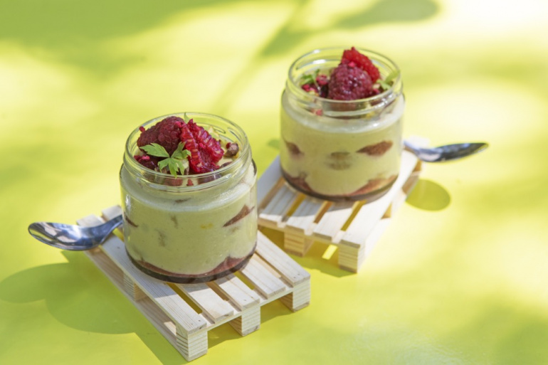 A nyári desszertkínálat egyik eleme, a pisztáciás tiramisu