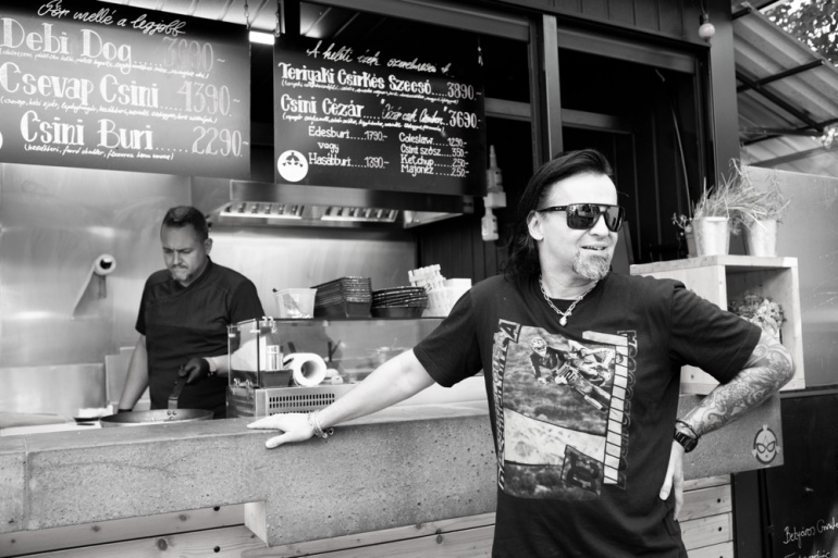 – A kolbászt vagy a csevapot, amelynek sikerét mutatja, hogy tegnap 25 kilót adtunk el belőle. Aztán a tépett húsos hamburgert is – azzal együtt, hogy a hamburger szó említésével ki lehet űzni a világból, pláne, hogy ma már mindenki „a világ legjobb hamburgerét” süti. A közönségigény miatt nekünk is meg kell sütnünk a sajátunkat, de egy kis csinibabás csavarral tesszük. Még szűk az étlapunk, e tekintetben is lépésről lépésre haladunk. A korábbi helyeimen túl sokféle ételt kínáltam egyszerre, amit aztán később vissza kellett szorítanom, mert nem volt tartható akkora választék.